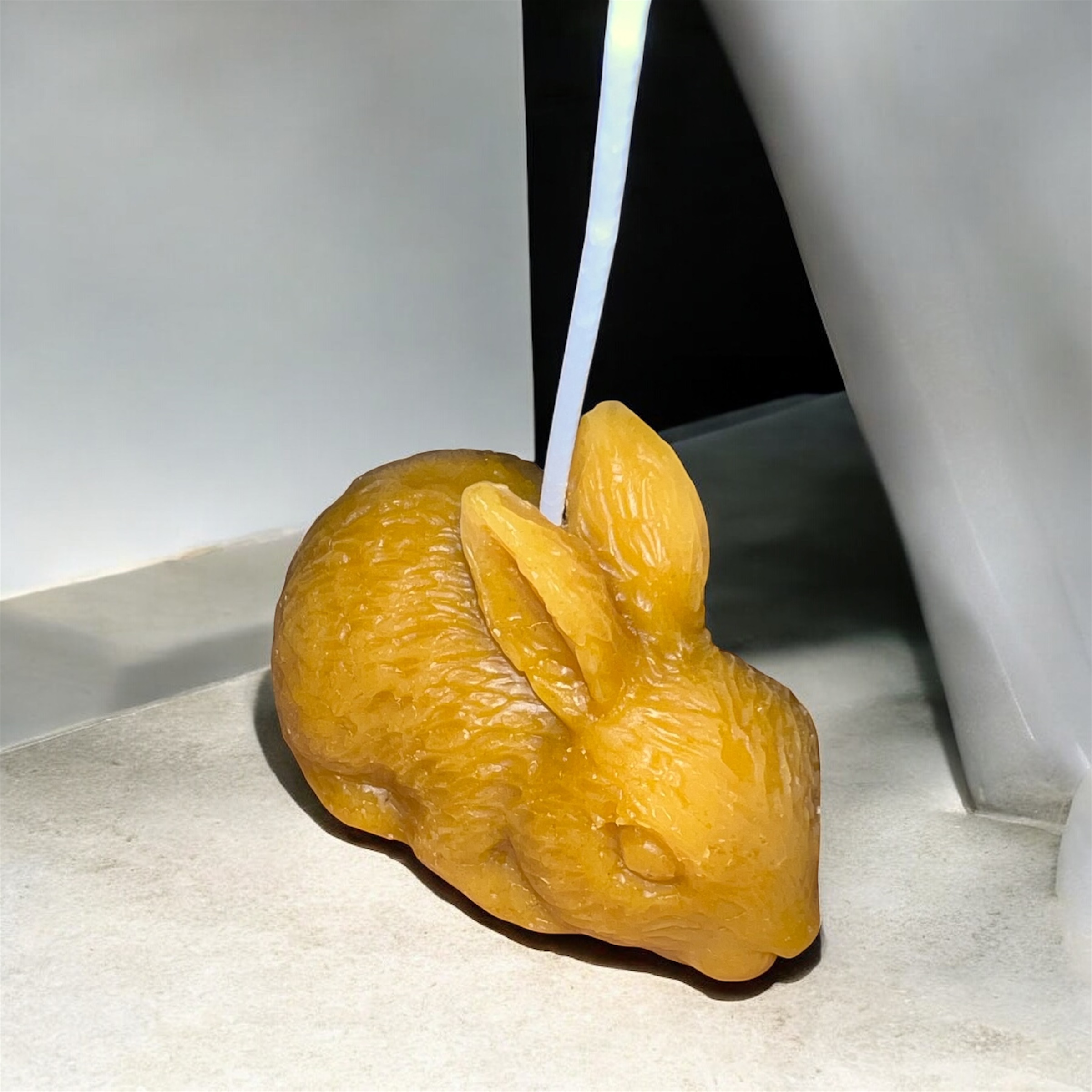 Vela artesanal natural de cera de abeja con la simpática figura de un conejo. Ideal para decorar con ternura y dar un aire campestre al hogar
